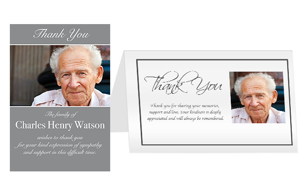 Personalized Thank You Cards are an excellent way to show appreciation for attendance at the memorial service, flowers, donations and for kind words and sympathies expressed.